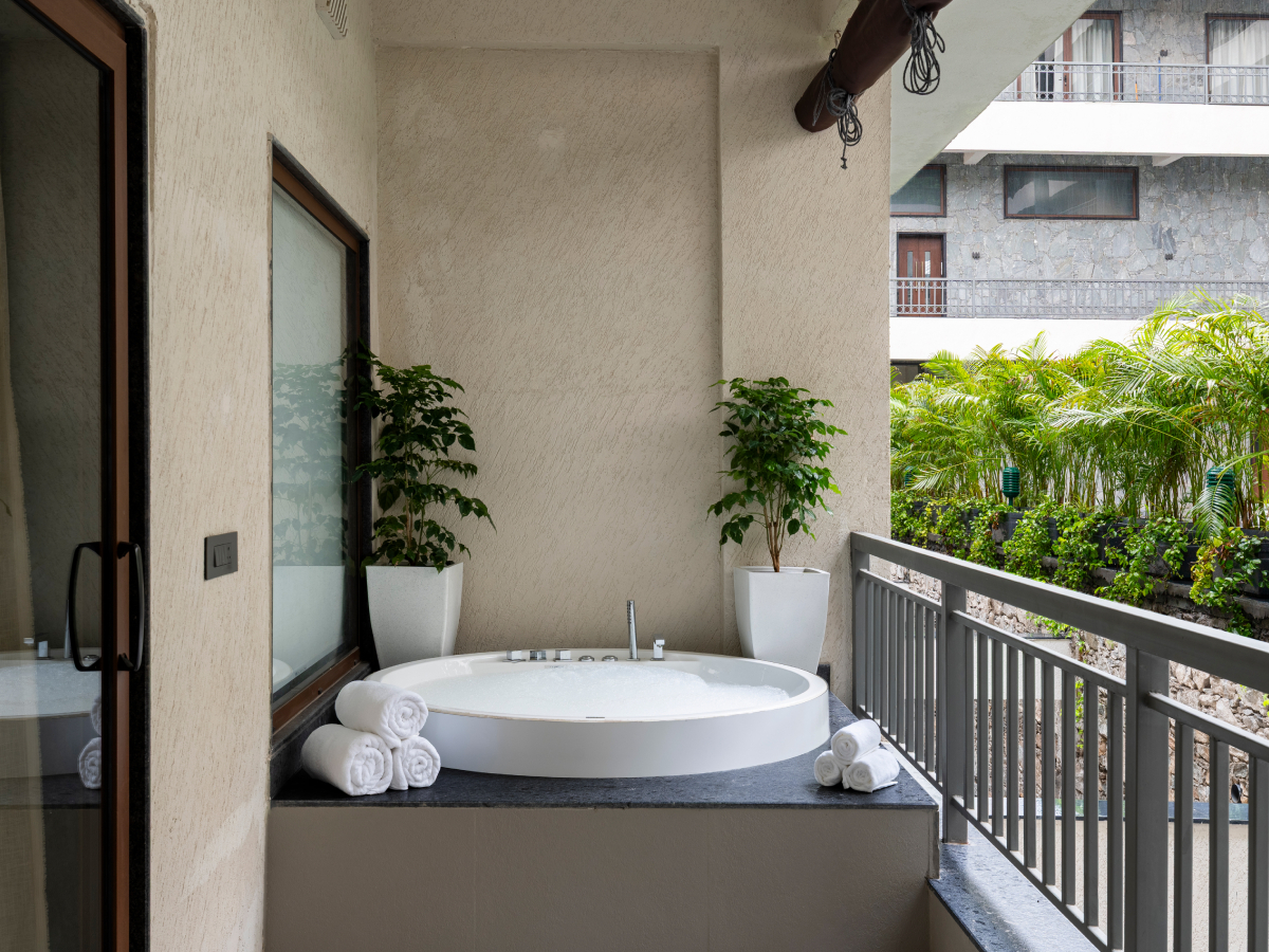 The Jacuzzi Bliss Balcony Rooms are designed for guests seeking an elevated luxury experience with privacy, comfort, and scenic beauty.